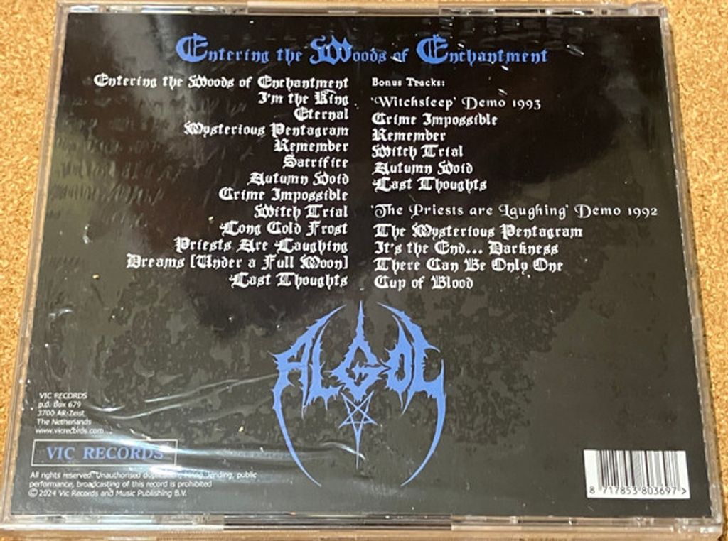 Algol was a Norwegian black death metal band formed in 1989 and released several demos and one full length album in the 90’s. ‘Entering the Woods of Enchantment’ is one of the most obscure and hard to find Norwegian extreme metal gems from the 90’s. A true much sought after underground gems, only one available on discogs (over 150 euros). Bonus are the ‘The Priests Are Laughing’ Demo 1992 and the ‘Witchsleep’ Demo 1993. All tracks restored and remastered by Achilleas Kalantsiz (Vio Lence, Possessed, Varathron). The booklet contains an extensive interview with guitarist / vocalist Thomas Andresen (also Fester, No). In April 1992 Algol played on a show not far from Oslo in the town of Askim. On that particular night also played Enslaved, Infinite Decay, Infernus and Emperor, who actually played their first ever gig ever. Euronymous from Mayhem had a stand selling stuff from his infamous Helvete shop there too.