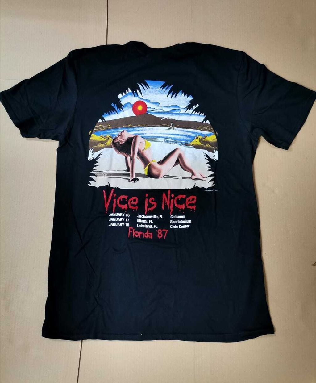 An official licensed Iron Maiden Unisex Tee featuring the 'Vice Is Nice' design motif. This high quality t-shirt design is available in the black colourway.