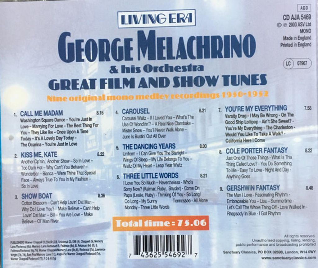 (Used) GEORGE MELACHRINO & HIS ORCHESTRA Great Film And Show Tunes CD Stage & Screen